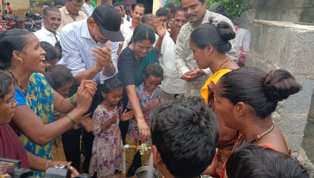 District Panchayat Officer Mrs. Susheela Madam is providing clean, fresh water to the residents of Nakkala Colony by turning on the tap under the leadership of Reach Global Foundation Chairman Dr. Ramesh Nath Lingutla, who adopted Nakkala Colony as part of P4.