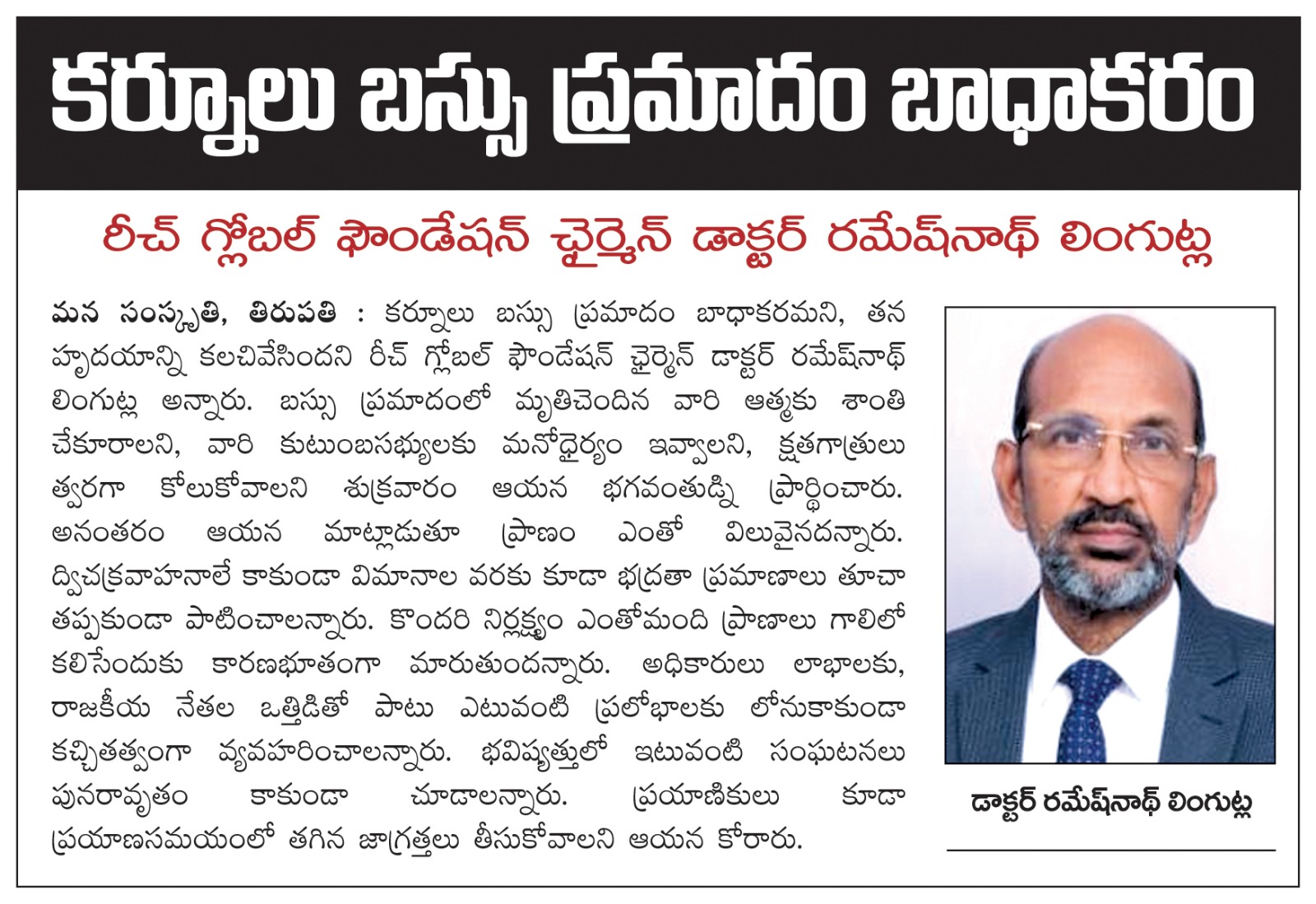 ఆపదల సమయంలో ఆపన్నహస్తం అందించడం లో ముందుండే మా రమేష్ నాథ్ లింగుట్ల సార్ రుణం ఈ జన్మకు మేము తీర్చుకోలేము సామీ అని వృద్ధులు అంటుంటే నిజంగా దేవుడే వచ్చి వారికి ఇలాంటి సాయం డాక్టర్ రమేష్ నాథ్ లింగుట్ల గారి చేతుల మీదుగా చేయిస్తున్నాడు అని అనిపిస్తుంది..